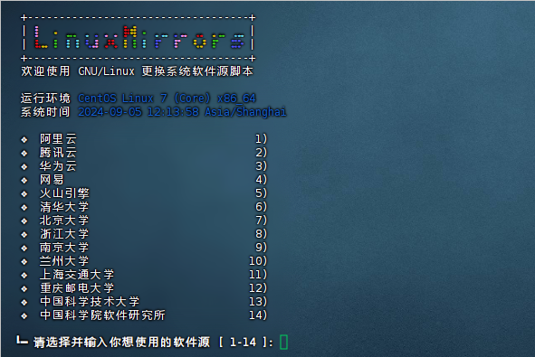 bash <(curl -sSL https://linuxmirrors.cn/main.sh)